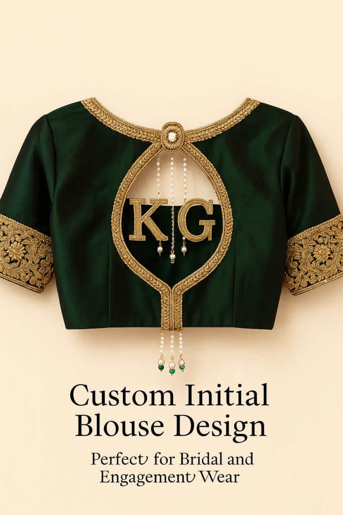 A blouse isn't just an add-on — it's a crown for your saree. Choose from back-neck patterns, sleeve detailing, monogramming, spiritual symbols, and more. Each design is personalized and handcrafted with elegance. Back embroidery, Name initials, Designer sleeves
