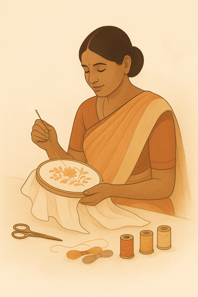 Sthree Kalaa is not just a business — it is a purpose stitched with passion. We exist to empower women and preserve the legacy of hand embroidery across India.
